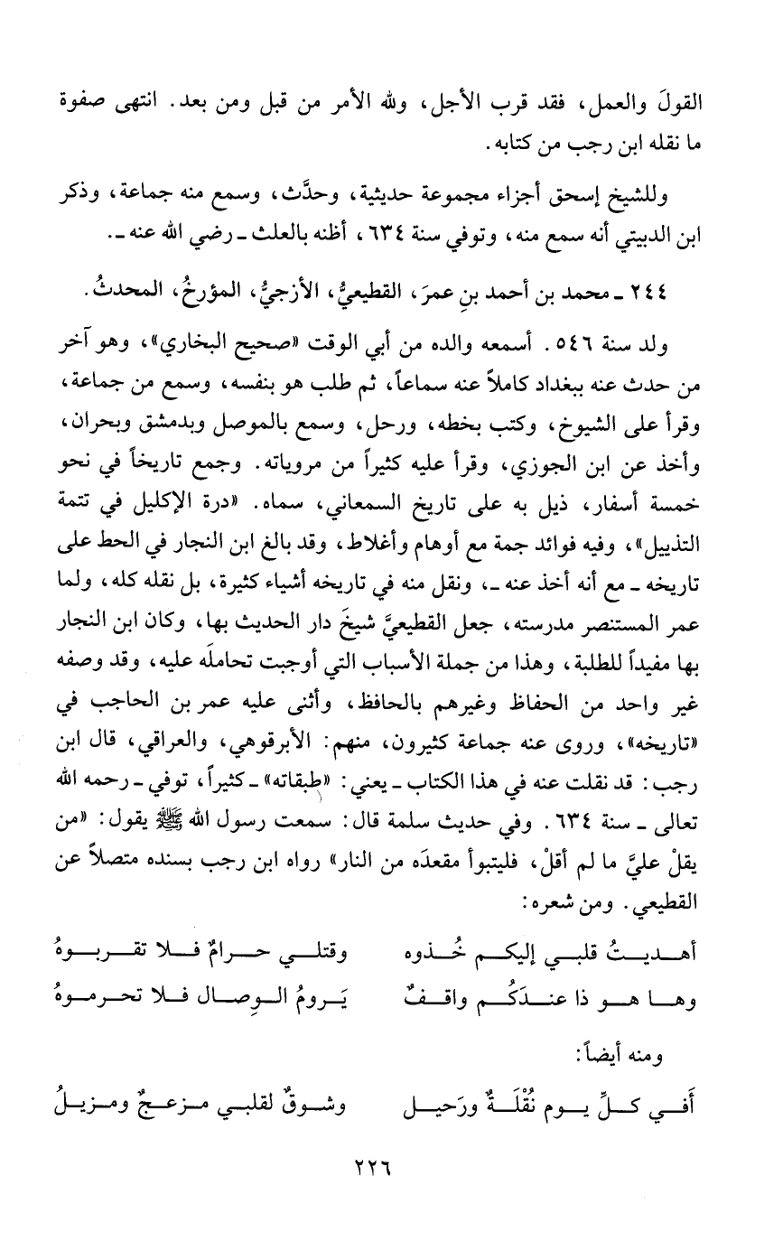 244 - محمد بن أحمد بنِ عمرَ، القطيعيُّ، الأزجيُّ، المؤرخُ، المحدثُ.