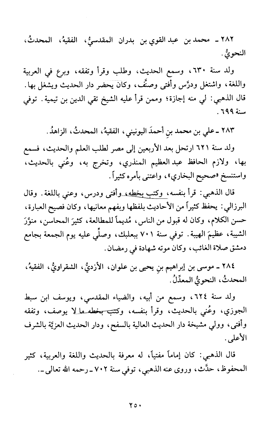 282 - محمد بن عبد القوي بن بدران المقدسيُّ، الفقيهُ، المحدثُ، النحويُّ.