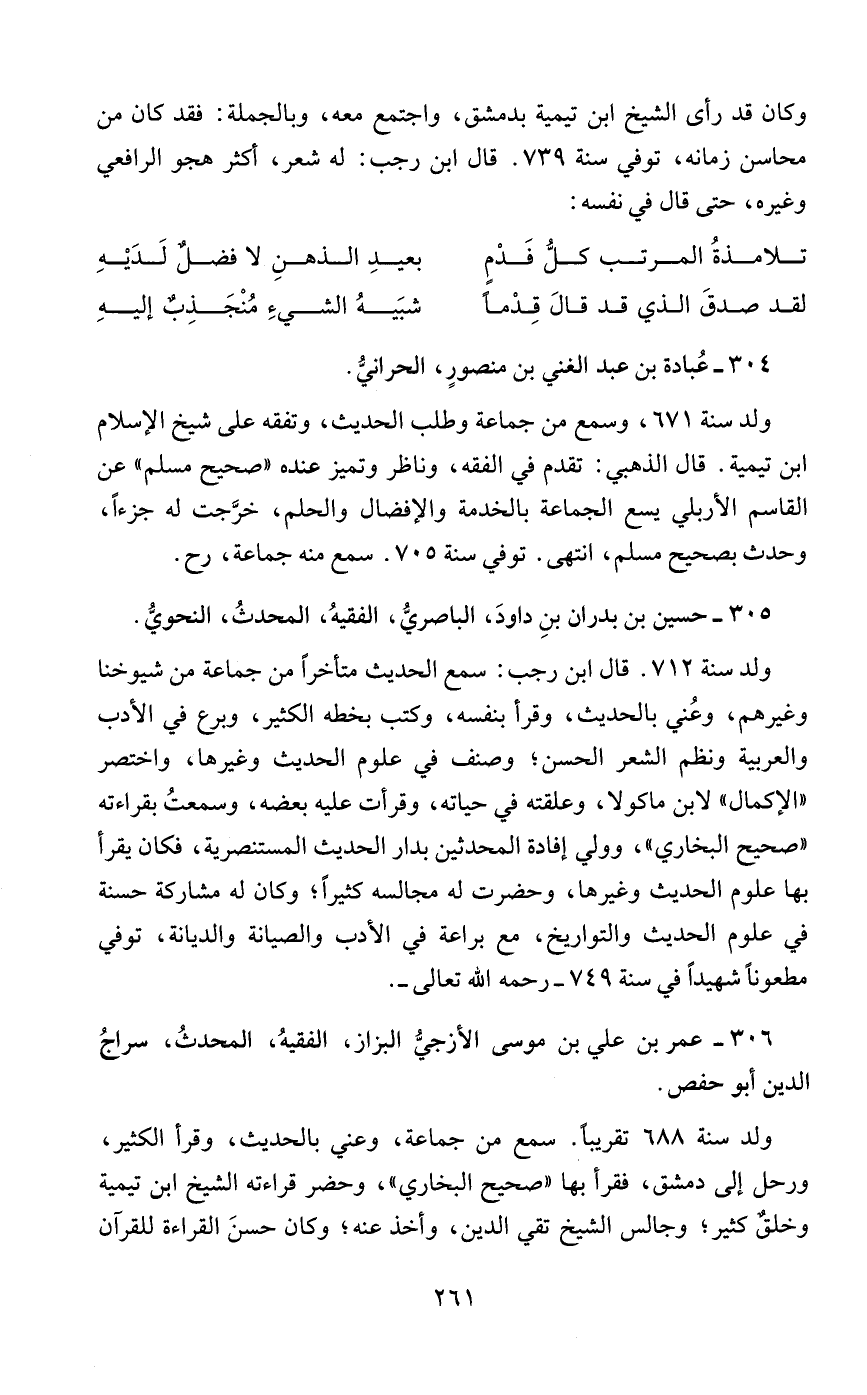 305 - حسين بن بدران بنِ داودَ، الباصريُّ، الفقيهُ، المحدثُ، النحويُّ.