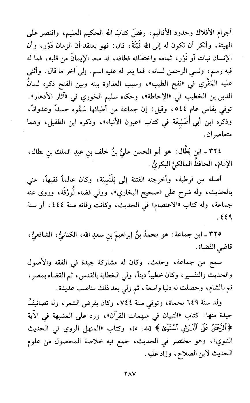 324 - ابن بَطَّال: هو أبو الحسن عليُّ بنُ خلف بنِ عبدِ الملك بنِ بطال، الإمامُ، الحافظُ المالكيُّ البكريُّ.