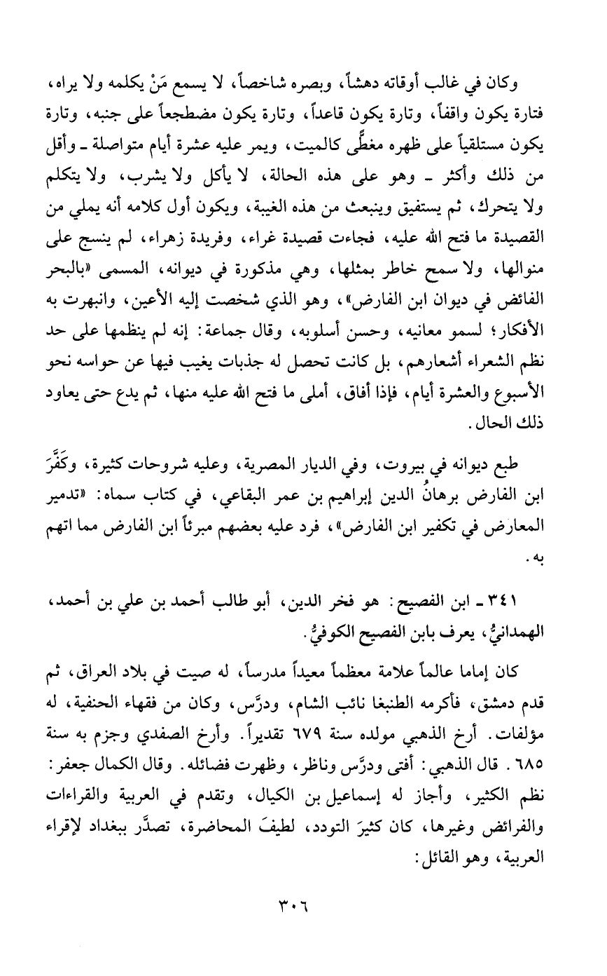 341 - ابن الفصيح: هو فخر الدين، أبو طالب أحمد بن علي بن أحمد، الهمدانيُّ، يعرف بابن الفصيح الكوفيُّ.