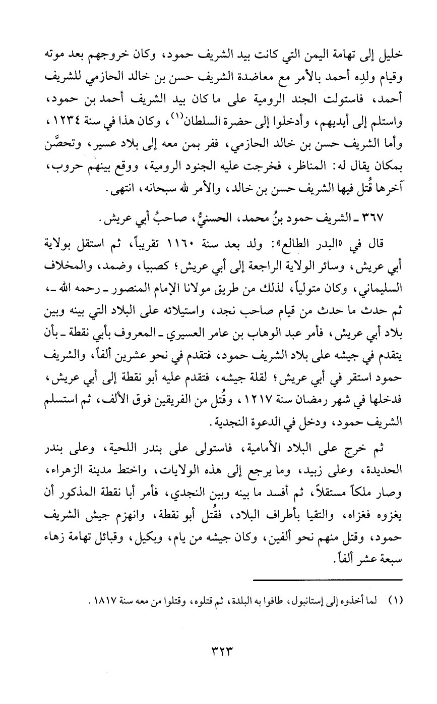 367 - الشريف حمود بنُ محمد، الحسنيُّ، صاحبُ أبي عريش.