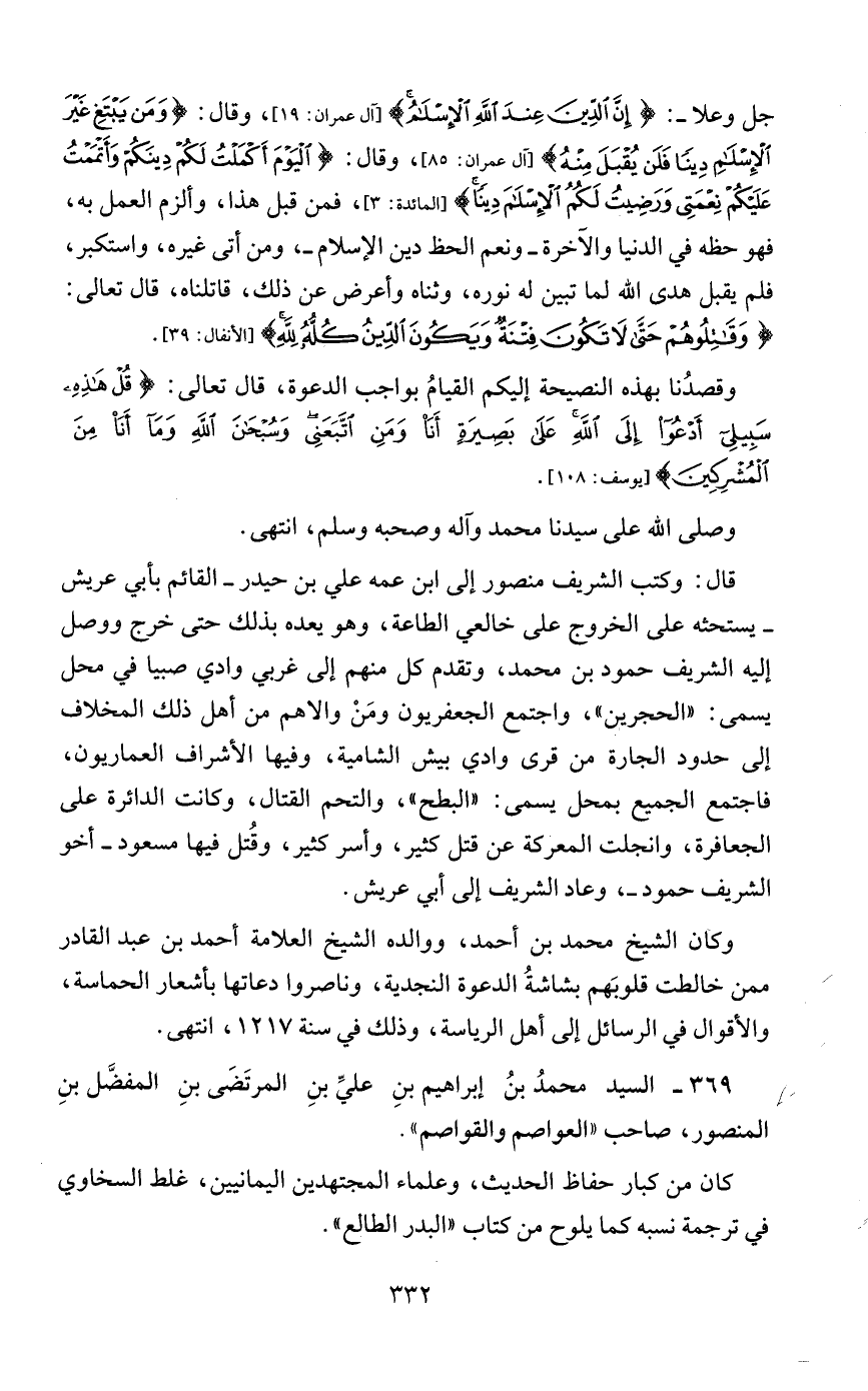 369 - السيد محمدُ بنُ إبراهيم بنِ عليِّ بنِ المرتَضَى بنِ المفضَّل بنِ المنصور، صاحب "العواصم والقواصم".