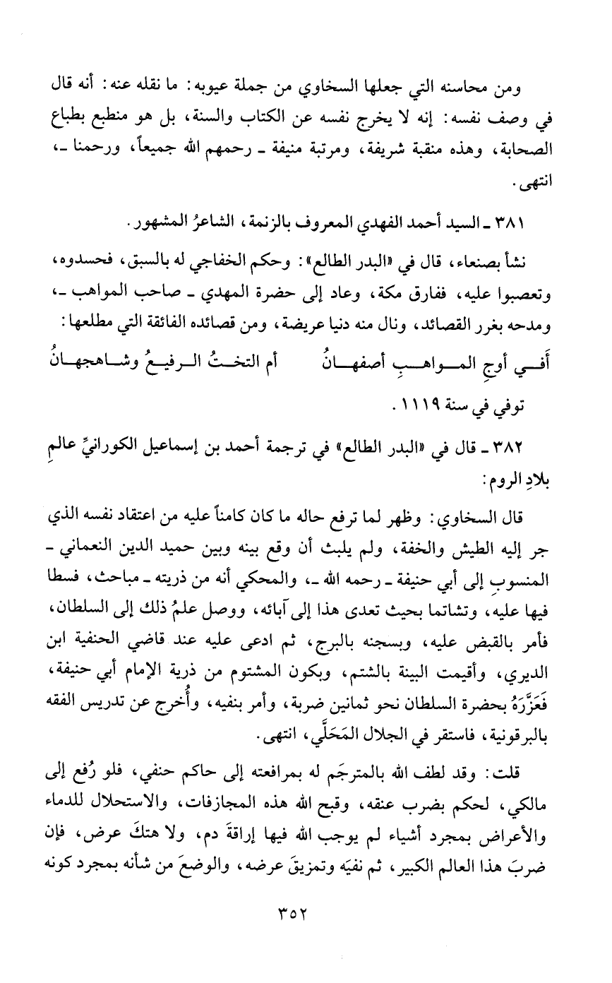 382 - قال في "البدر الطالع" في ترجمة أحمد بن إسماعيل الكورانيِّ عالمِ بلادِ الروم: