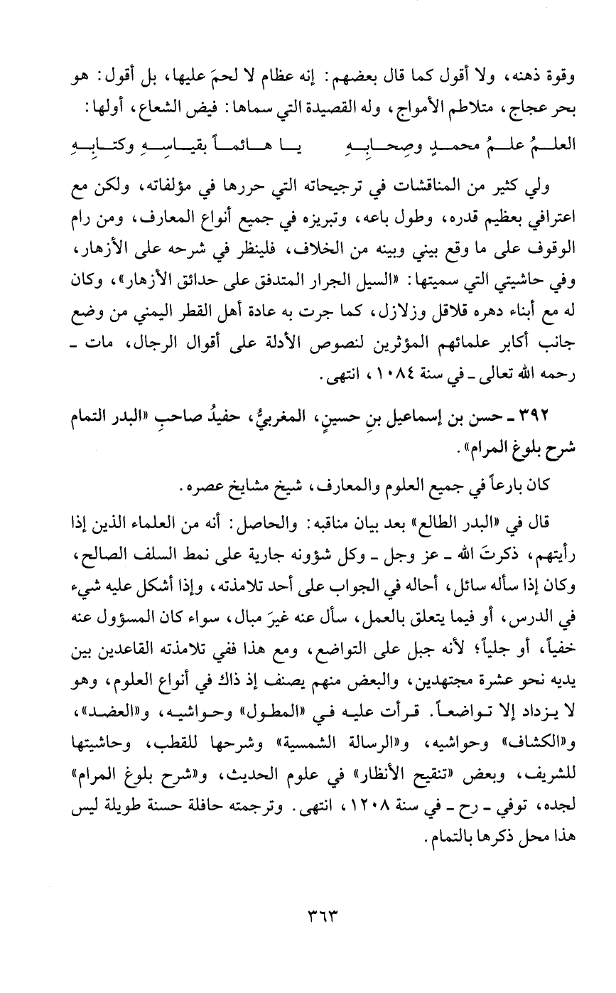 392 - حسن بن إسماعيل بنِ حسينٍ، المغربيُّ، حفيدُ صاحبِ "البدر التمام شرح بلوغ المرام".