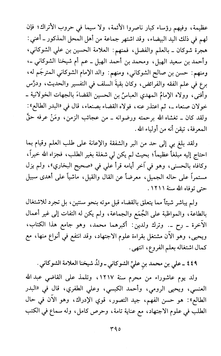 449 - علي بن محمد بنِ عليِّ الشوكاني - ولدُ شيخنا العلامة الشوكاني.