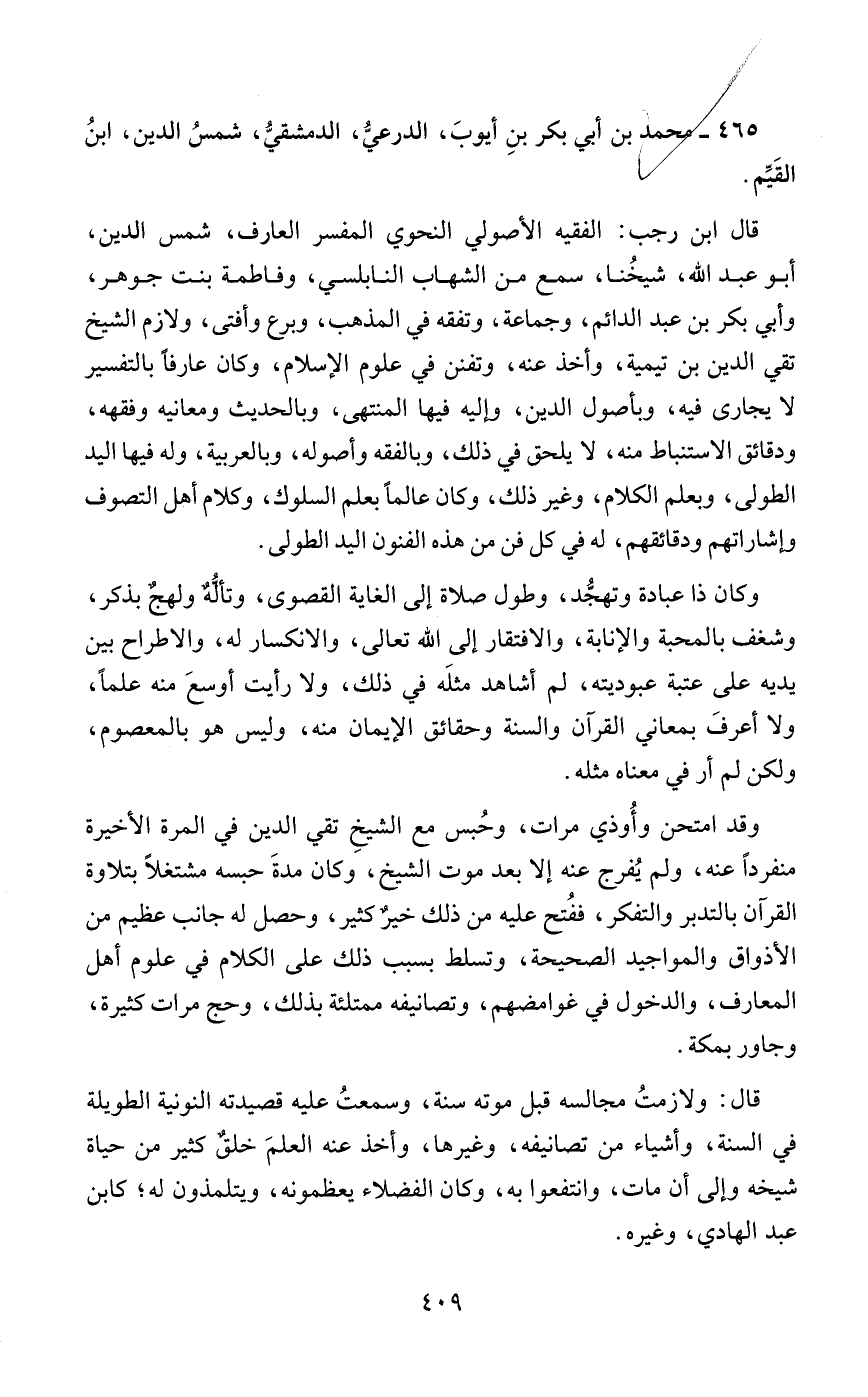 465 - محمد بن أبي بكر بنِ أيوبَ، الدرعيُّ، الدمشقيُّ، شمسُ الدين، ابنُ القَيِّم.