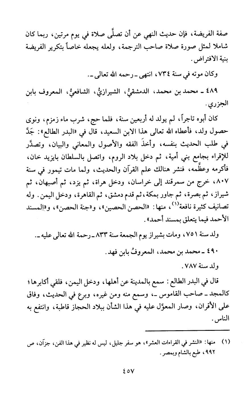 489 - محمد بن محمد، الدمشقيُّ، الشيرازيُّ، الشافعيُّ، المعروف بابن الجزري.