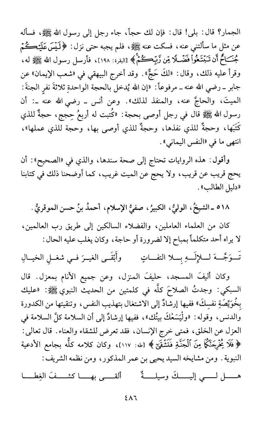 518 - الشيخُ، الوليُّ، الكبيرُ، صفيُّ الإسلام، أحمدُ بنُ حسن الموقريُّ.
