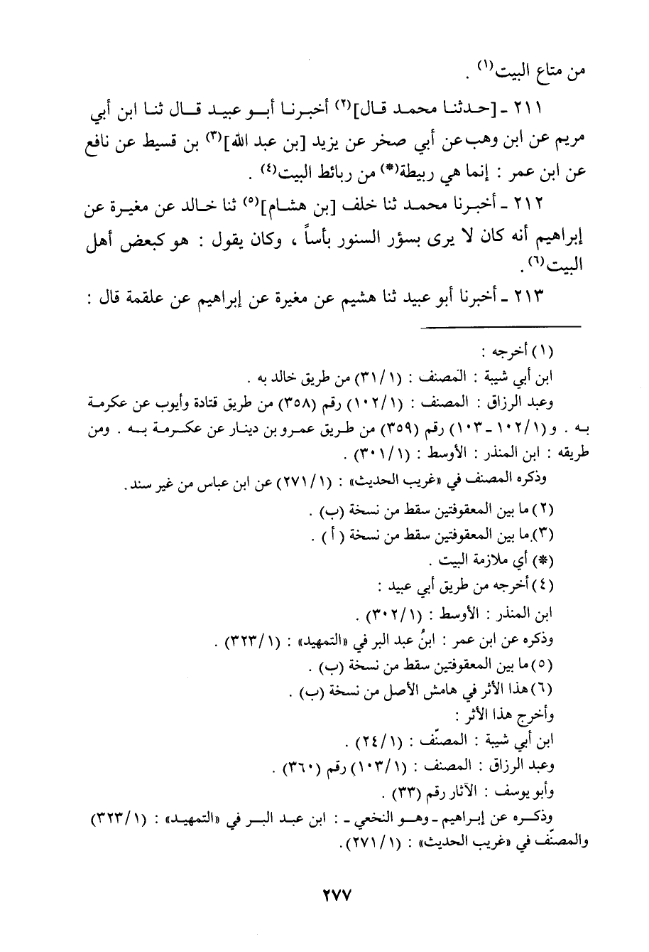 213 - أَخْبَرَنَا أَبُو عُبَيْدٍ ثنا هُشَيْمٌ، عَنْ مُغِيرَةَ، عَنْ إِبْرَاهِيمَ، عَنْ عَلْقَمَةَ، قَالَ: -[278]- «§إِنَّمَا هِيَ كَبَعْضِ أَهْلِ الْبَيْتِ»