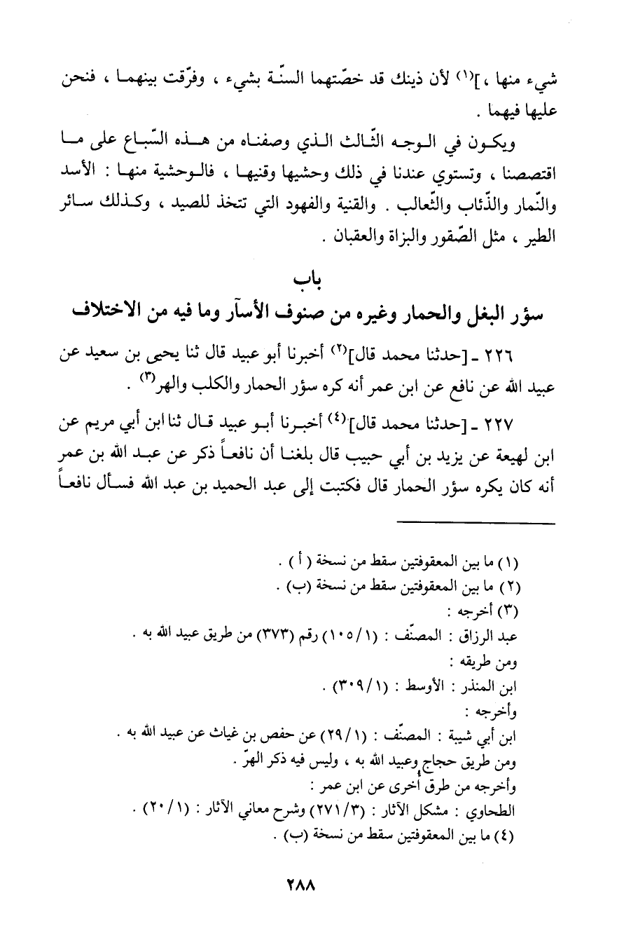 227 - حَدَّثَنَا مُحَمَّدٌ، قَالَ: أَخْبَرَنَا أَبُو عُبَيْدٍ قَالَ: ثنا ابْنُ أَبِي مَرْيَمَ، عَنِ ابْنِ لَهِيعَةَ، عَنْ يَزِيدَ بْنِ أَبِي حَبِيبٍ، قَالَ: بَلَغَنَا أَنَّ نَافِعًا، ذَكَرَ عَنْ عَبْدِ اللَّهِ بْنِ عُمَرَ، أَنَّهُ §كَانَ يَكْرَهُ سُؤْرَ الْحِمَارِ , قَالَ: فَكَتَبْتُ إِلَى عَبْدِ الْحَمِيدِ بْنِ عَبْدِ اللَّهِ فَسَأَلَ نَافِعًا -[289]- عَنْهُ فَقَالَ: لَمْ أَذْكُرْهُ عَنِ ابْنِ عُمَرَ , إِنَّمَا أَنَا قُلْتُهُ