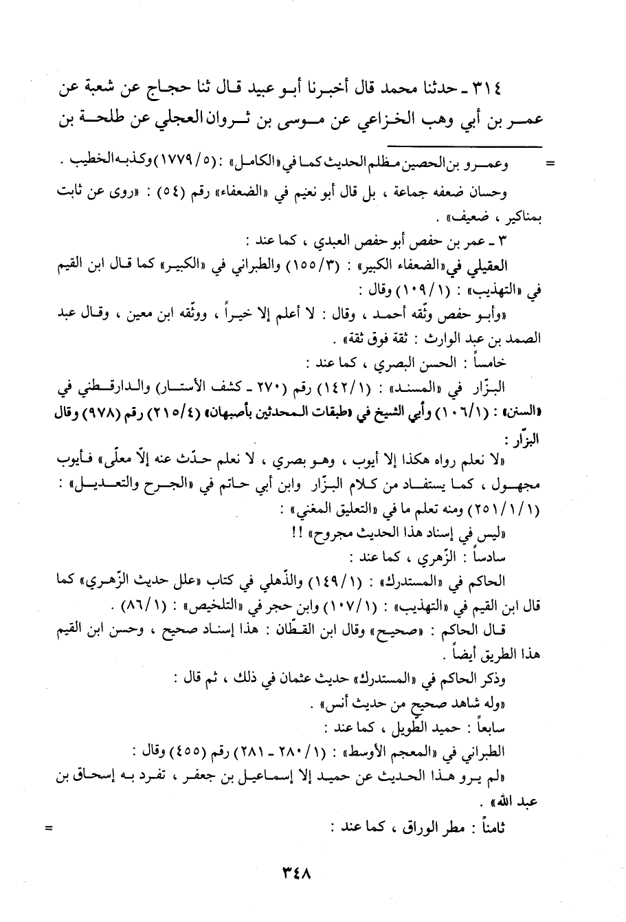 314 - حَدَّثَنَا مُحَمَّدٌ، قَالَ: أَخْبَرَنَا أَبُو عُبَيْدٍ قَالَ: ثنا حَجَّاجٌ، عَنْ شُعْبَةَ، عَنْ عُمَرَ بْنِ أَبِي وَهْبٍ الْخُزَاعِيِّ، عَنْ مُوسَى بْنِ ثَرْوَانَ الْعِجْلِيِّ، عَنْ طَلْحَةَ -[349]- بْنِ عُبَيْدِ اللَّهِ بْنِ كُرَيْزٍ الْخُزَاعِيِّ، عَنْ عَائِشَةَ، قَالَتْ: «§كَانَ رَسُولُ اللَّهِ صَلَّى اللَّهُ عَلَيْهِ وَسَلَّمَ إِذَا تَوَضَّأَ خَلَّلَ لِحْيَتَهُ»