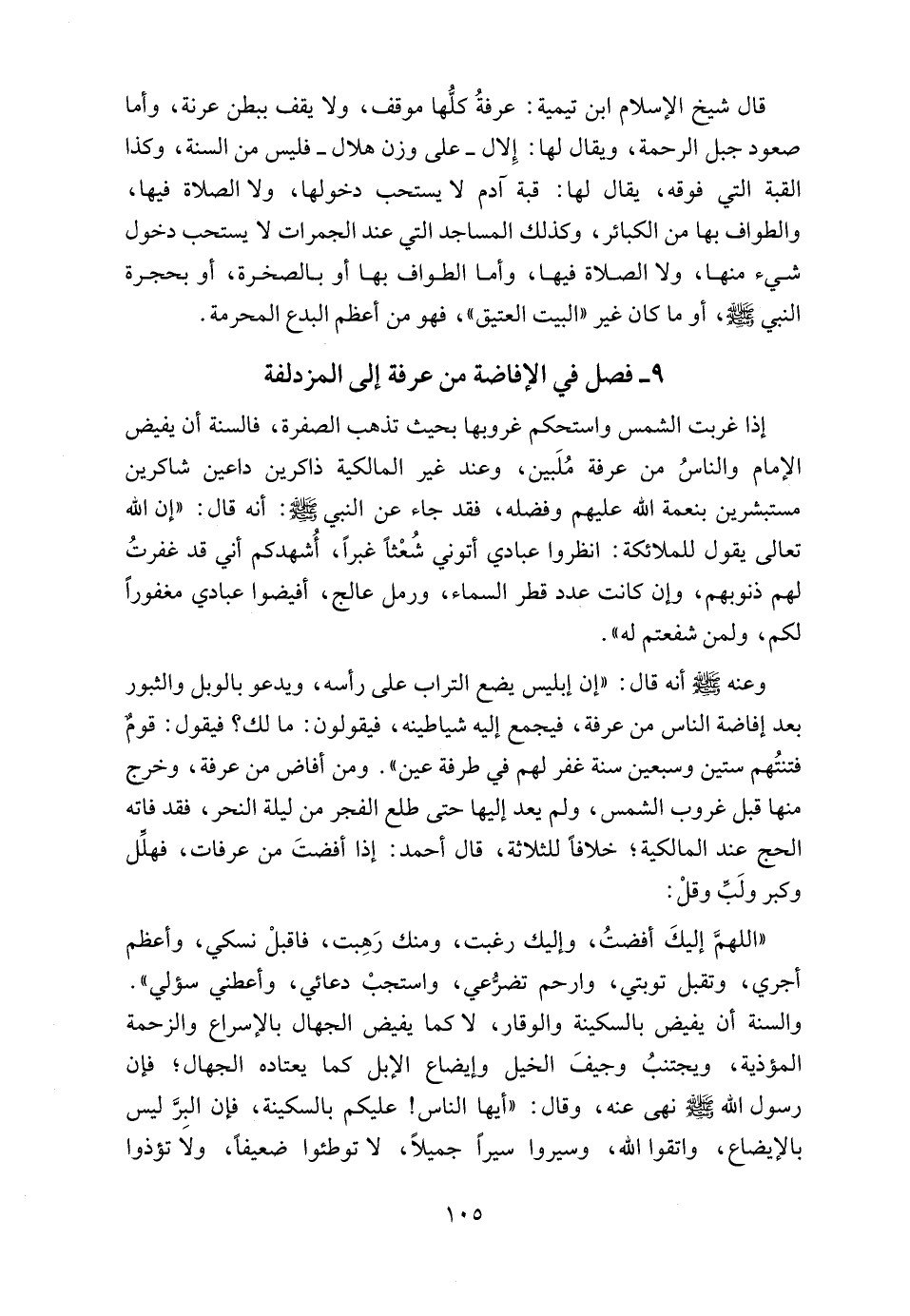 9 - فصل في الإفاضة من عرفة إلى المزدلفة