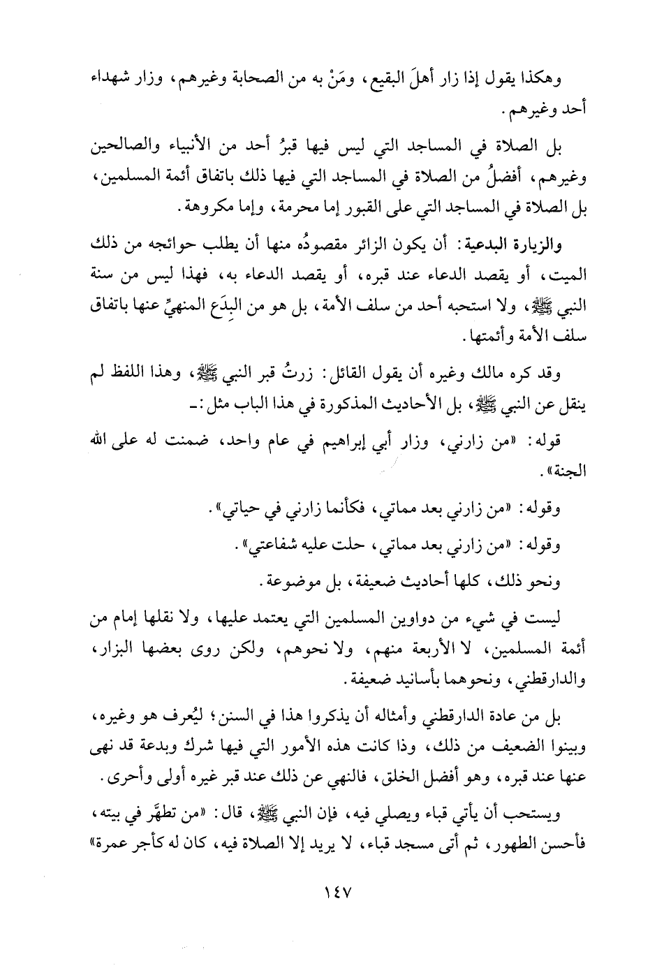 بل من عادة الدارقطني وأمثاله أن يذكروا هذا في السنن؛ ليُعرف هو وغيره، وبينوا الضعيف من ذلك، وذا كانت هذه الأمور التي فيها شرك وبدعة قد نهى عنها عند قبره، وهو أفضل الخلق، فالنهي عن ذلك عند قبر غيره أولى وأحرى.