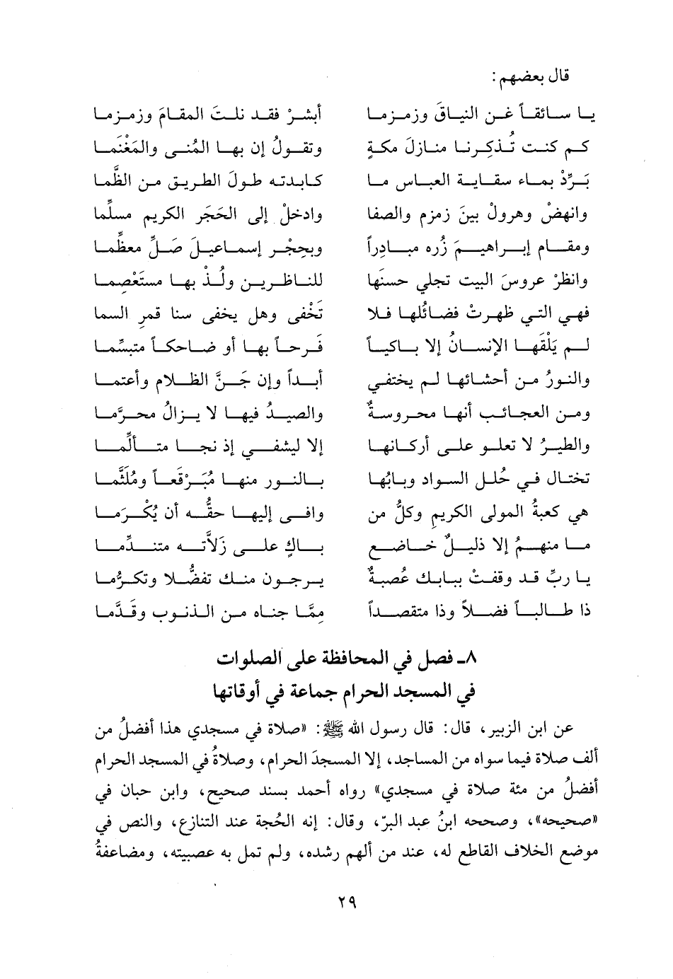 8 - فصل في المحافظة على الصلوات في المسجد الحرام جماعة في أوقاتها