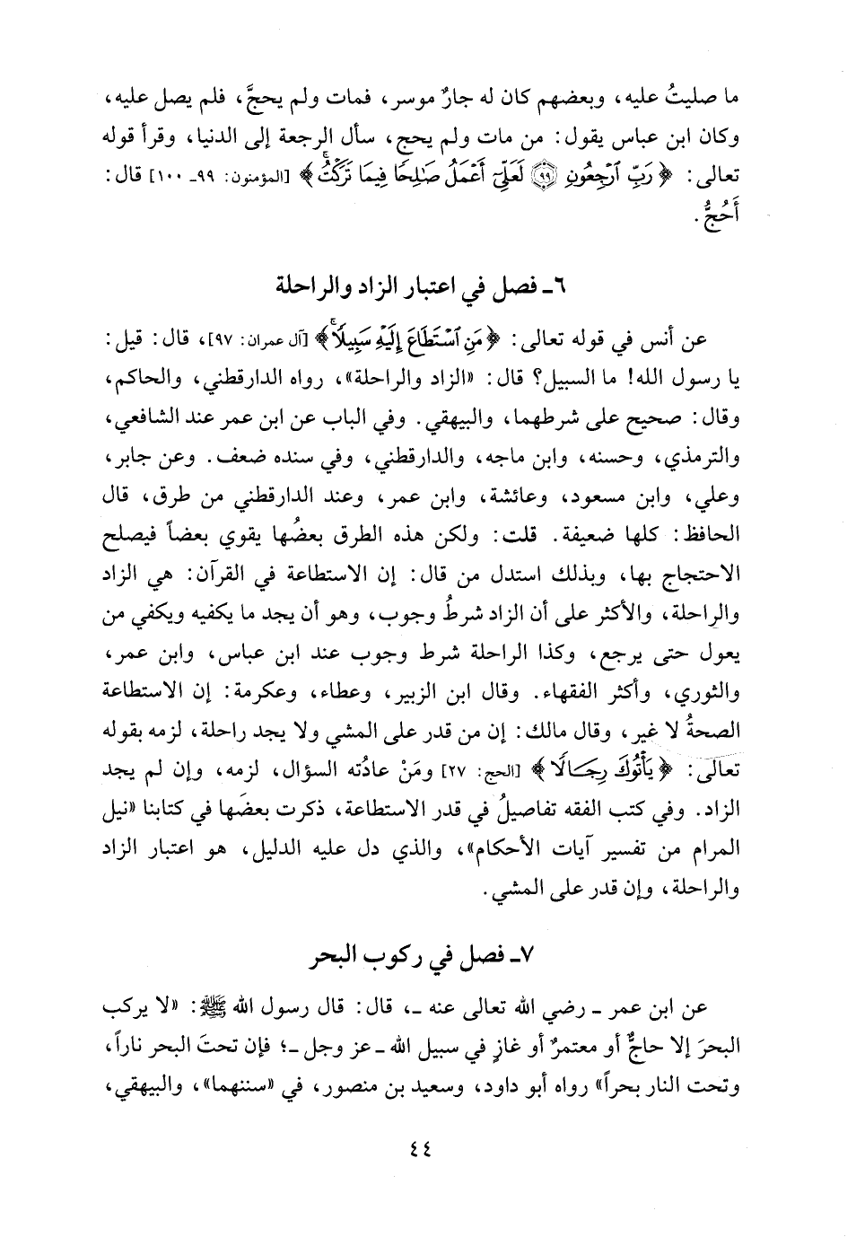 5 - فصل في اعتبار الزاد والراحلة
