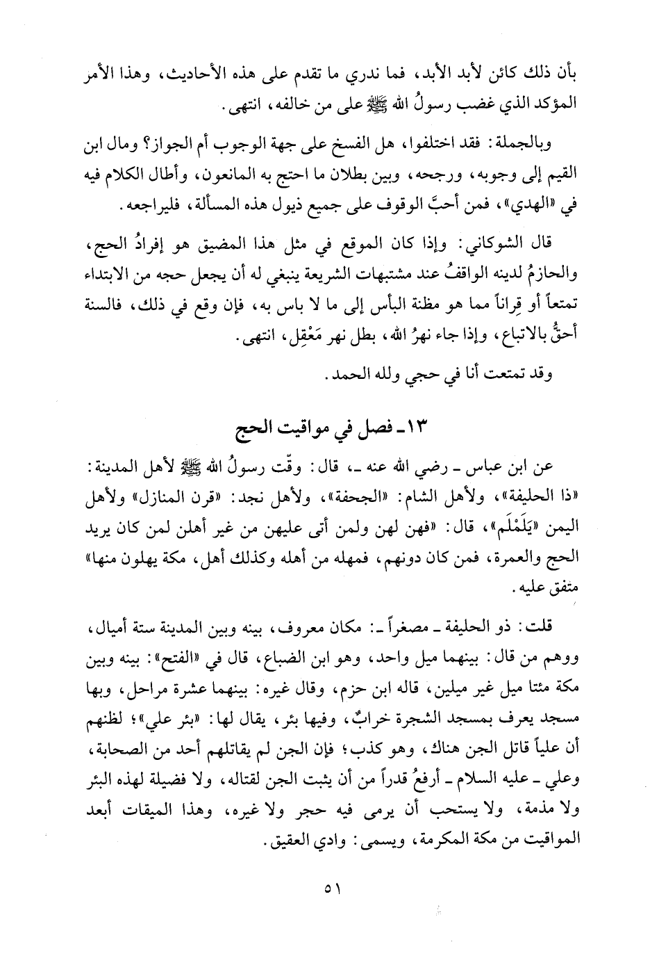 قال الشوكاني: وإذا كان الموقع في مثل هذا المضيق هو إفرادُ الحج، والحازمُ لدينه الواقفُ عند مشتبهات الشريعة ينبغي له أن يجعل حجه من الابتداء تمتعاً أو قِراناً مما هو مظنة البأس إلى ما لا بأس به، فإن وقع في ذلك، فالسنة أحقُّ بالاتباع، وإذا جاء نهرُ الله، بطل نهر مَعْقِل، انتهى.