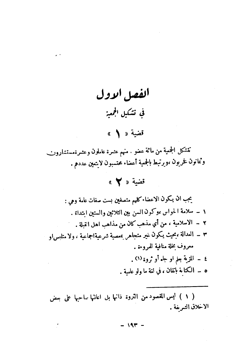 يجب أَن يكون الْأَعْضَاء كلهم متصفين بست صِفَات عَامَّة وَهِي: