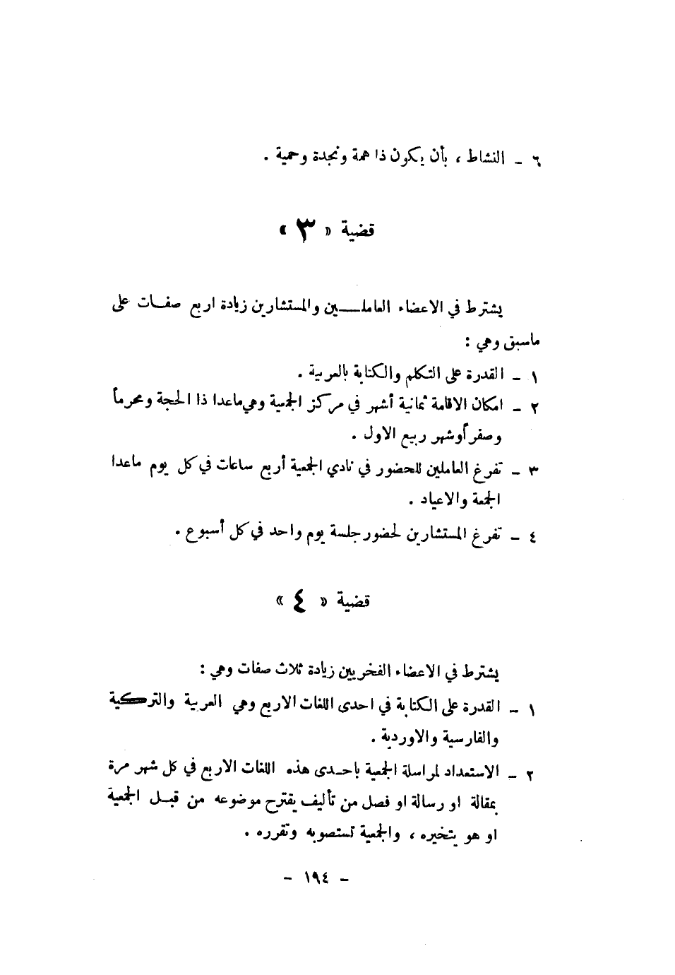 3 - تفرغ العاملين للحضور فِي نَادِي الجمعية أَربع سَاعَات فِي كل يَوْم مَا عدا الْجُمُعَة والأعياد.