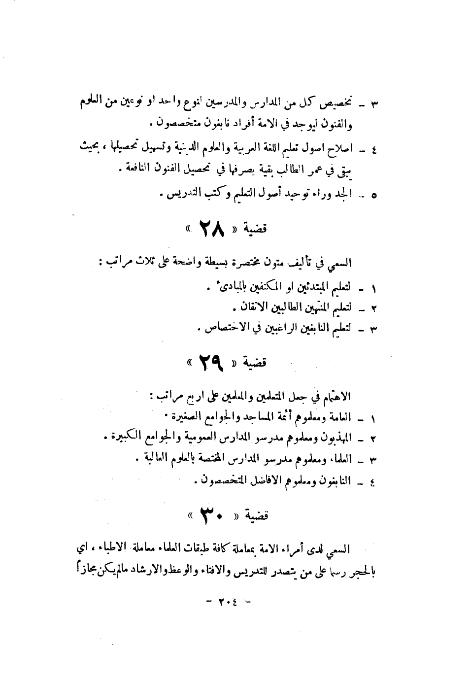 4 - إصْلَاح أصُول تَعْلِيم اللُّغَة الْعَرَبيَّة والعلوم الدِّينِيَّة وتسهيل تَحْصِيلهَا، بِحَيْثُ يبْقى فِي عمر الطَّالِب بَقِيَّة يصرفهَا فِي تَحْصِيل الْفُنُون النافعة.