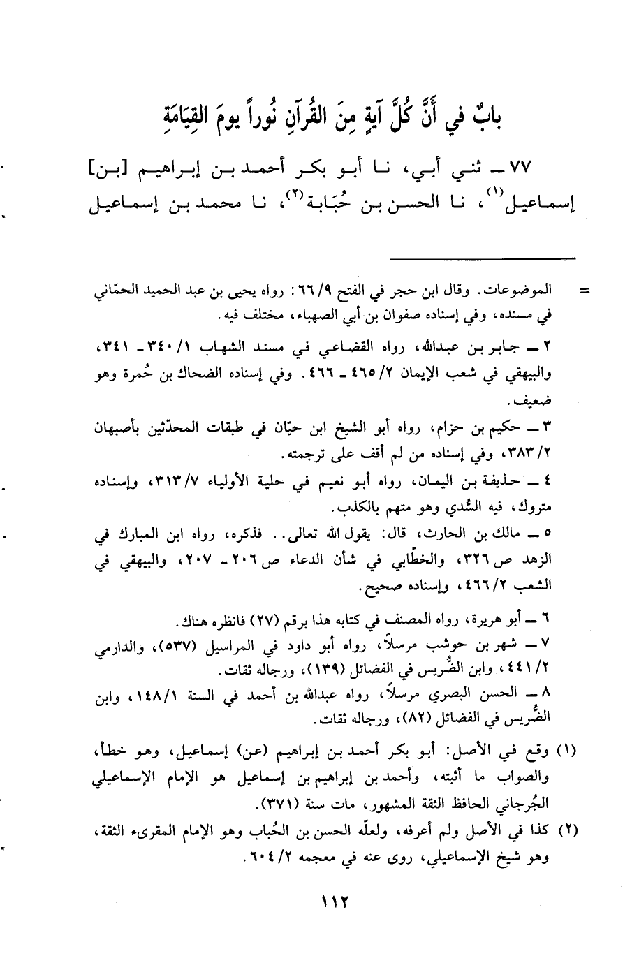 77 - ثني أَبِي، نا أَبُو بَكْرٍ أَحْمَدُ بْنُ إِبْرَاهِيمَ بْنِ إِسْمَاعِيلَ، نا الْحَسَنُ بْنُ حُبَابَةَ، نا مُحَمَّدُ بْنُ إِسْمَاعِيلَ
