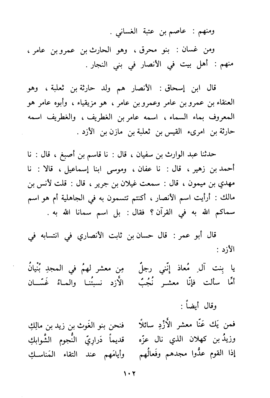 (إِمَّا سَأَلت فَإنَّا معشر نجب ... الأزد نسبتنا والماءُ غَسّان)