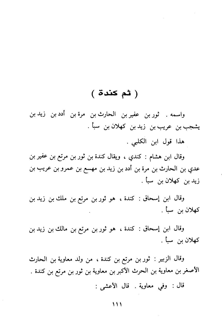 وَقَالَ ابْن هِشَام كندي وَيُقَال كِنْدَة بن ثَوْر بن مرتع بن عفير بن عدي بن الْحَارِث بن مرةِ بن أدد بن زيد بن مهسع بن عَمْرو بن عريب بن زيد بن كهلان بن سبأ