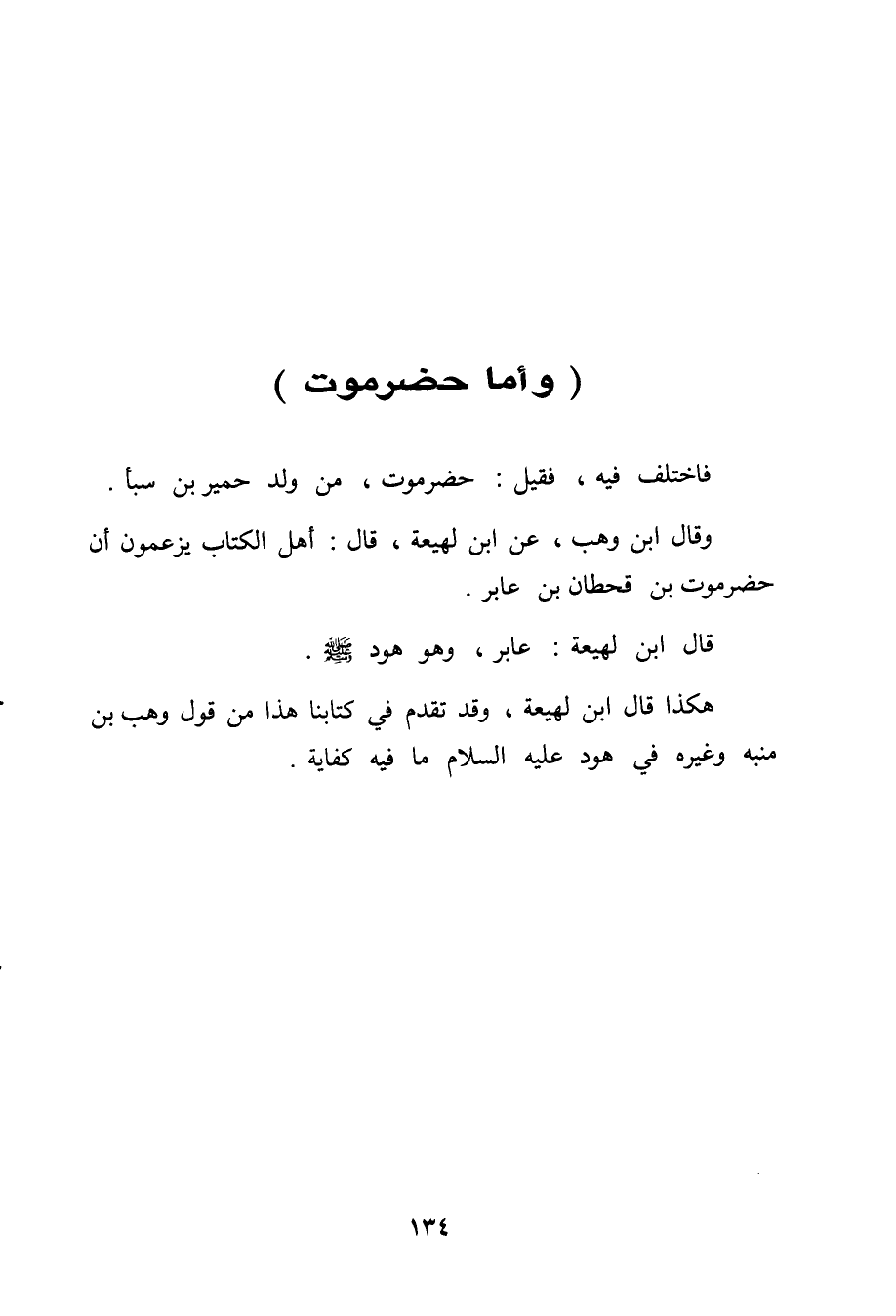 وَقَالَ ابْن وهب عَن ابْن لَهِيعَة قَالَ أهل الْكتاب يَزْعمُونَ أَن حَضرمَوْت بن قحطان بن عَابِر