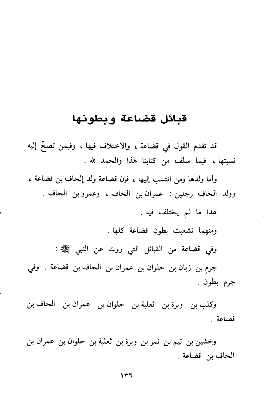 وَأما وَلَدهَا وَمن انتسب إِلَيْهَا فَإِن قضاعة ولد إلحاف بن قضاعة وَولد الحاف رجلَيْنِ عمرَان بن الحاف وَعَمْرو بن الحاف