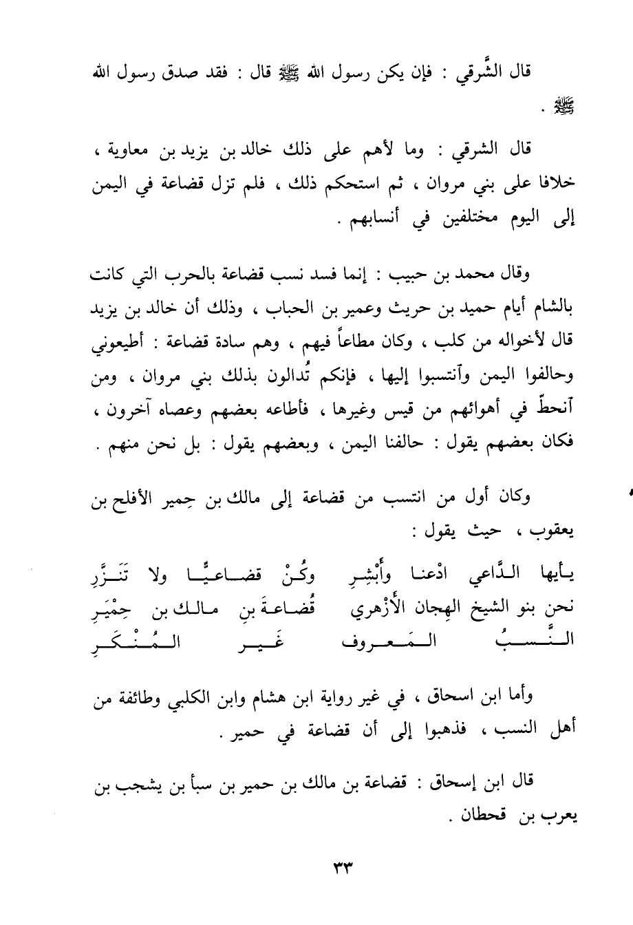 وَأما ابْن اسحاق فِي غير رِوَايَة ابْن هِشَام وَابْن الْكَلْبِيّ وَطَائِفَة من أهل النّسَب فَذَهَبُوا إِلَى أَن قضاعة فِي حمير