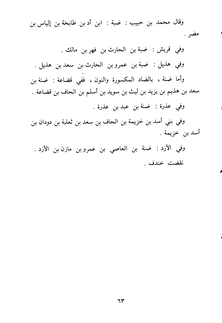وَقَالَ مُحَمَّد بن حبيب ضبة ابْن أد بن طابخة بن إلْيَاس بن مُضر