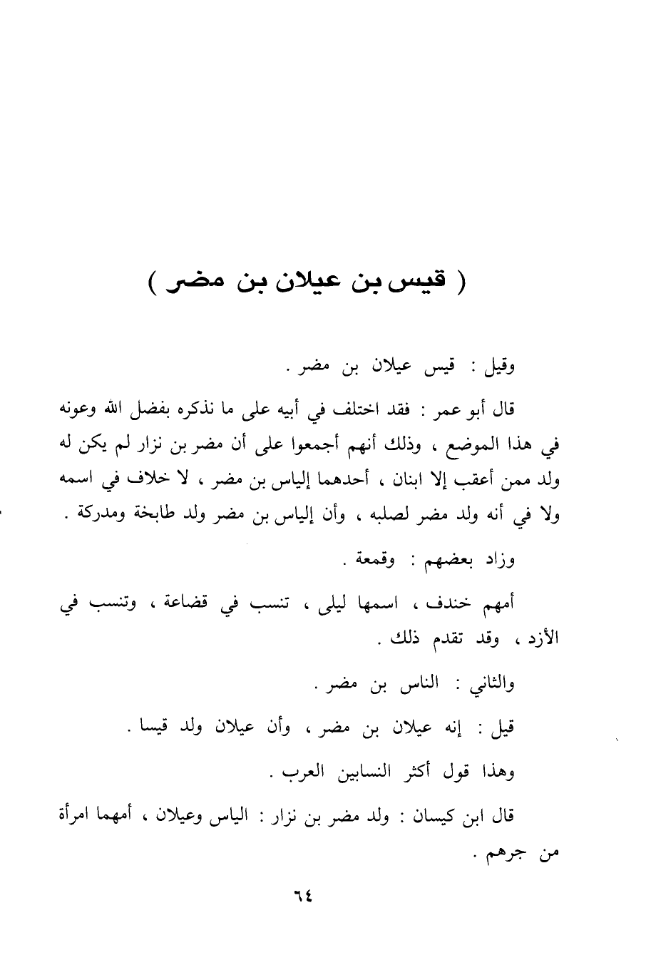 قَالَ ابْن كيسَان ولد مُضر بن نزار الياس وعيلان أمهما امْرَأَة من جرهم