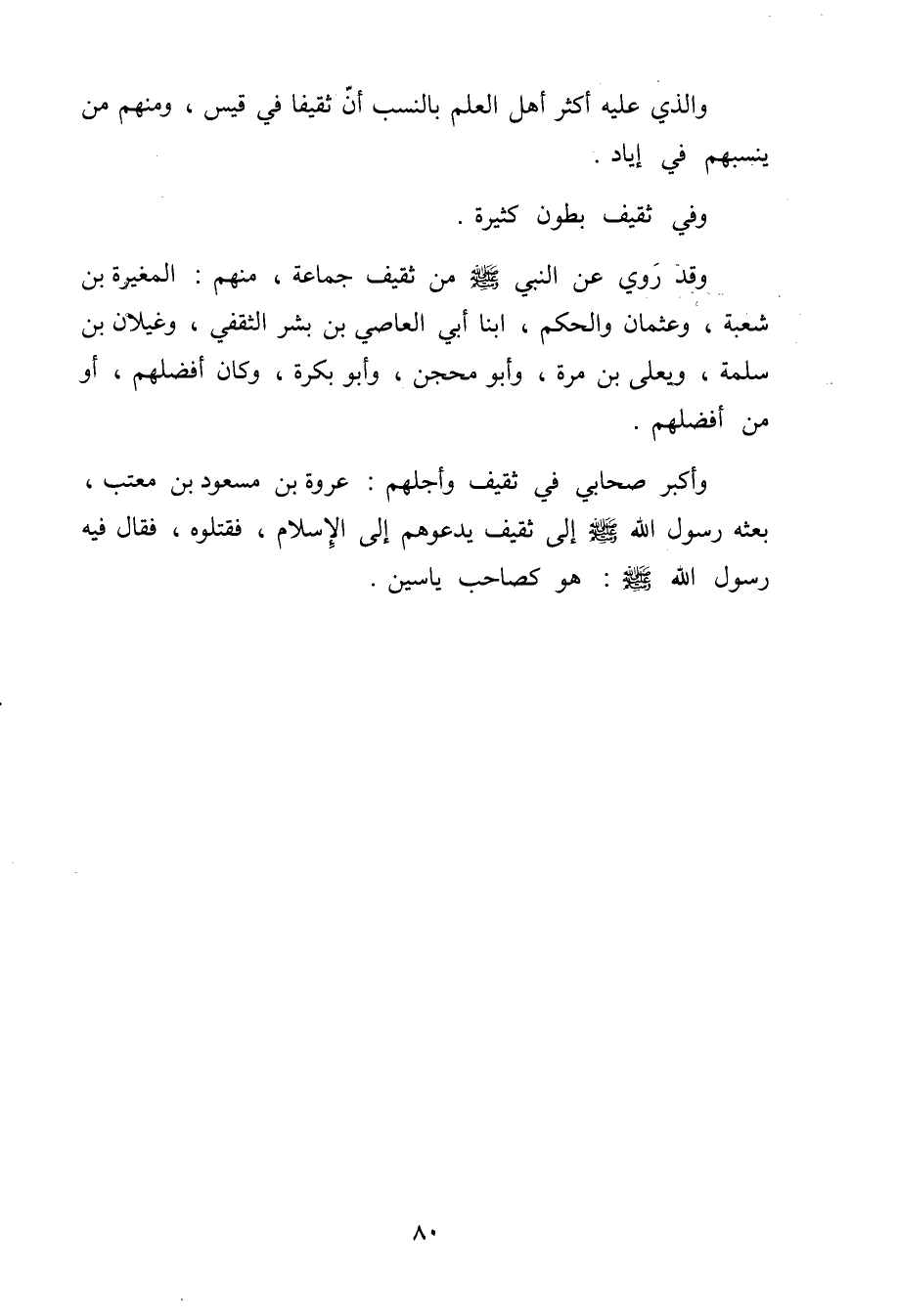 وأكبر صَحَابِيّ فِي ثَقِيف وأجلهم عُرْوَة بن مَسْعُود بن معتب بَعثه رَسُول الله صلى الله عَلَيْهِ وَسلم إِلَى ثَقِيف يَدعُوهُم إِلَى الْإِسْلَام فَقَتَلُوهُ فَقَالَ فِيهِ رَسُول الله صلى الله عَلَيْهِ وَسلم هُوَ كصاحب ياسين