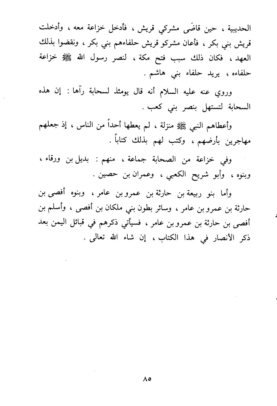 وَأما بَنو ربيعَة بن حَارِثَة بن عَمْرو بن عَامر وَبَنوهُ أفصى بن حَارِثَة بن عَمْرو بن عَامر وَسَائِر بطُون بني ملكان بن أفصى وَأسلم بن أفصى بن حَارِثَة بن عَمْرو بن عَامر فَسَيَأْتِي ذكرهم فِي قبائل الْيمن بعد ذكر الْأَنْصَار فِي هَذَا الْكتاب إِن شَاءَ الله تَعَالَى