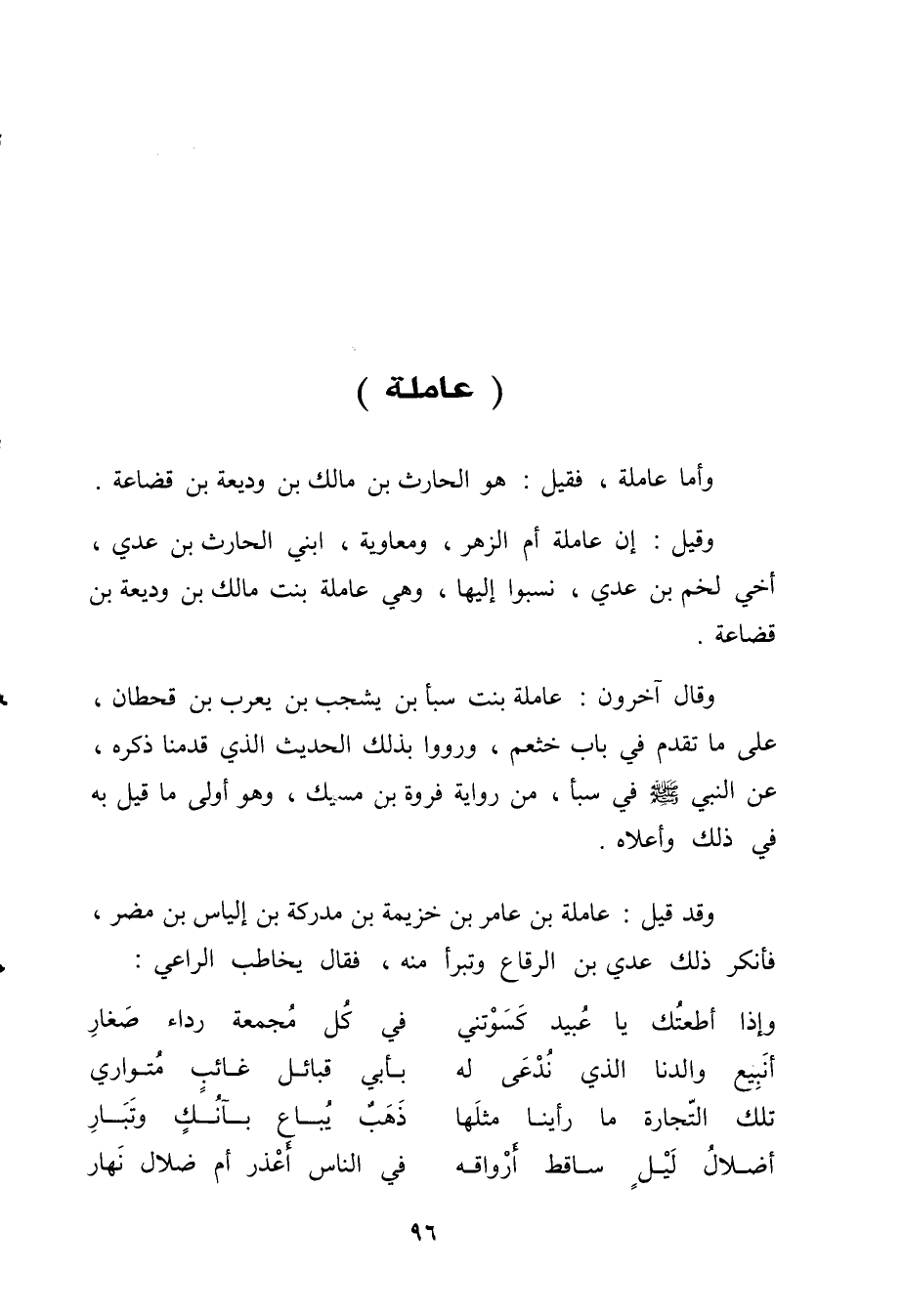 وَقَالَ آخَرُونَ عاملة بنت سبأ بن يشجب بن يعرب بن قحطان على مَا تقدم فِي بَاب خثعم وَرووا بذلك الحَدِيث الَّذِي قدمنَا ذكره عَن النَّبِي صلى الله عَلَيْهِ وَسلم فِي سبأ من رِوَايَة فَرْوَة بن مسيك وَهُوَ أولى مَا قيل بِهِ فِي ذَلِك وَأَعلاهُ