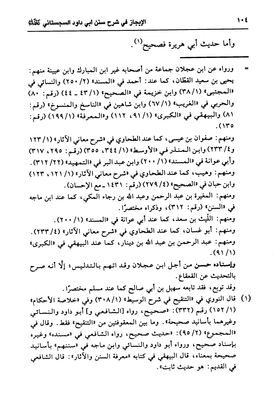 (¬1) قال النووي في "التنقيح في شرح الوسيط" (1/ 308) وفي "خلاصة الأحكام" (1/ 152) رقم (332): "صحيح، رواه [الشافعي و]، أبو داود والنسائي وغيرهما بأسانيد صحيحة". وما بين المعقوفتين من " التنقيح" فقط. وقال في "المجموع" (2/ 95): "حديث صحيح، رواه الشافعي في "مسنده" وغيره بإسناد صحيح، ورواه أبو داود والنسائي وابن ماجه في "سننهم" بأسانيد صحيحة بمعناه، قال البيهقي في كتابه "معرفة السنن والآثار": قال الشافعي في القديم: هو حديث ثابت".