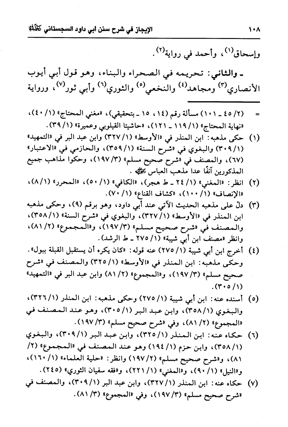 - والثاني: تحريمه في الصحراء والبناء، وهو قول أبي أيوب الأنصاري (¬3) ومجاهد (¬4) والنخعي (¬5) والثوري (¬6) وأبي ثور (¬7)، ورواية