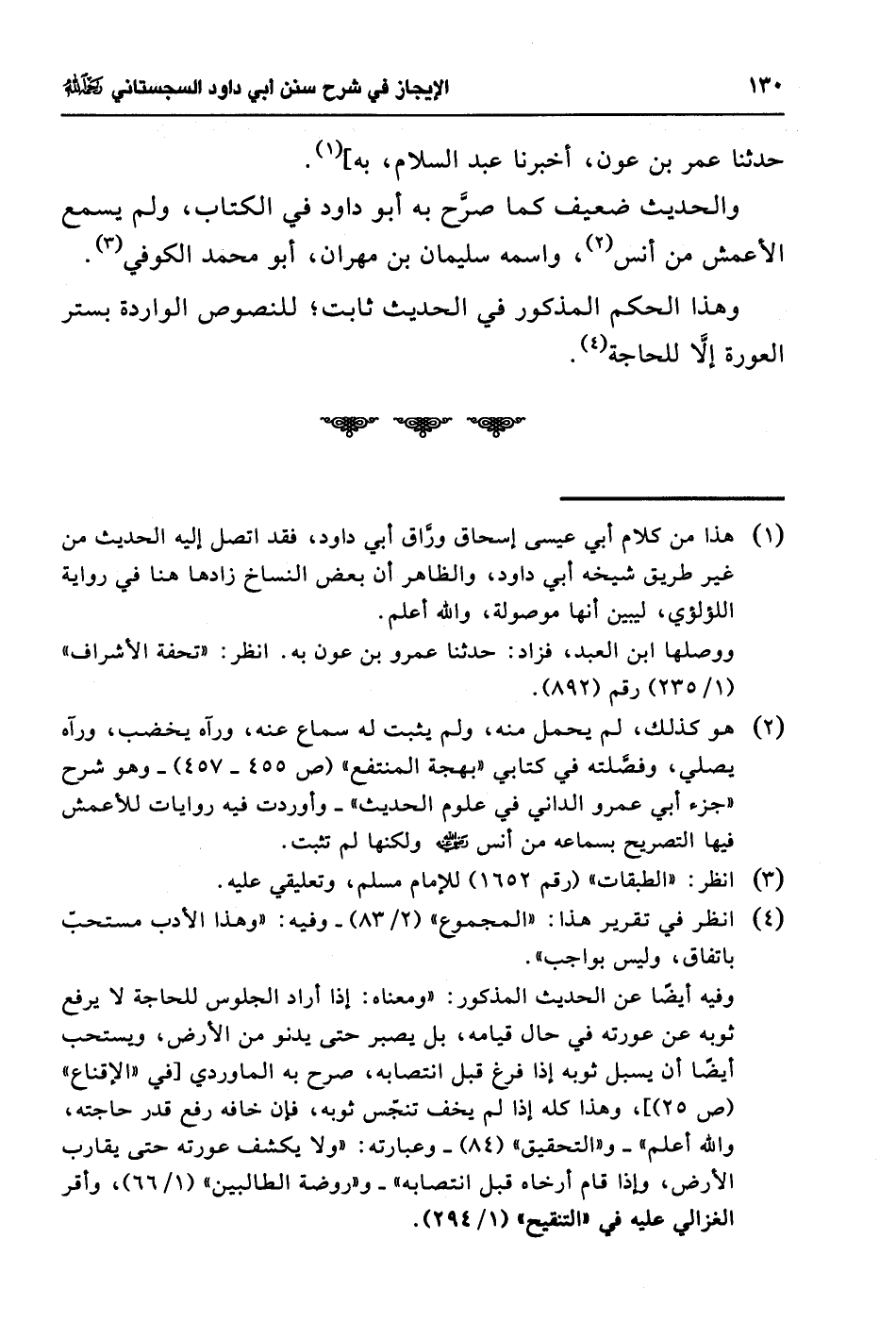 (¬1) هذا من كلام أبي عيسى أبو إسحاق ورَّاق أبي داود، فقد اتصل إليه الحديث من غير طريق شيخه أبي داود، والظاهر أن بعض النساخ زادها هنا في رواية اللؤلؤي، ليبين أنها موصولة، والله أعلم.