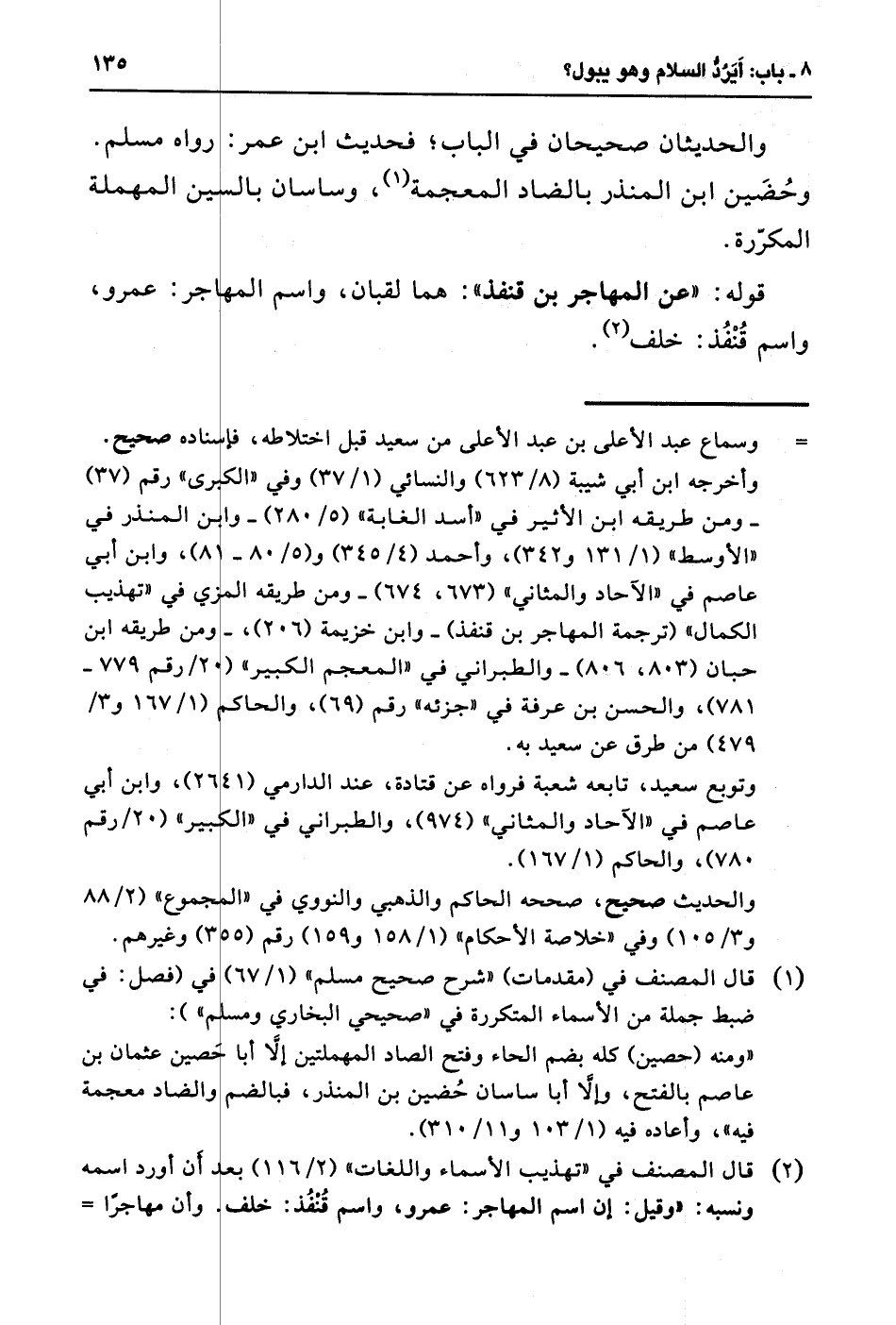 قوله: "عن المهاجر بن قنفذ": هما لقبان، واسم المهاجر: عمرو، واسم قُنْفُذ: خلف (¬2).