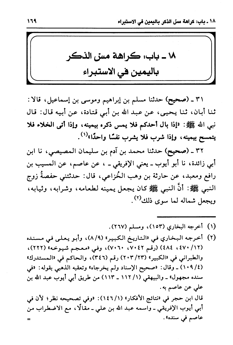 18 - باب: كراهة مس الذكر باليمين في الاستبراء