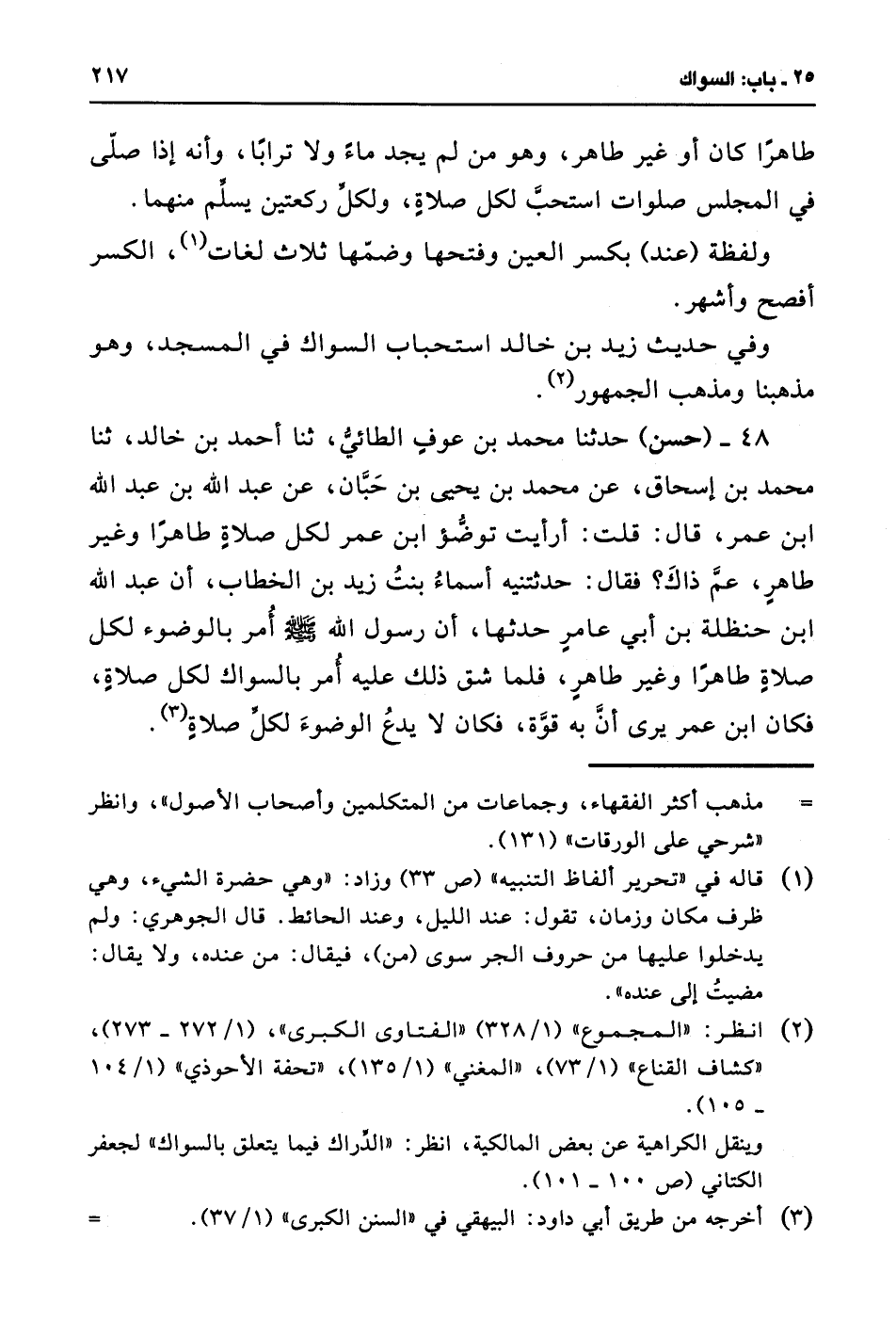 (¬2) انظر: "المجموع" (1/ 328) " الفتاوى الكبرى"، (1/ 272 - 273)، "كشاف القناع" (1/ 73)، "المغني" (1/ 135)، "تحفة الأحوذي" (1/ 104 - 105).