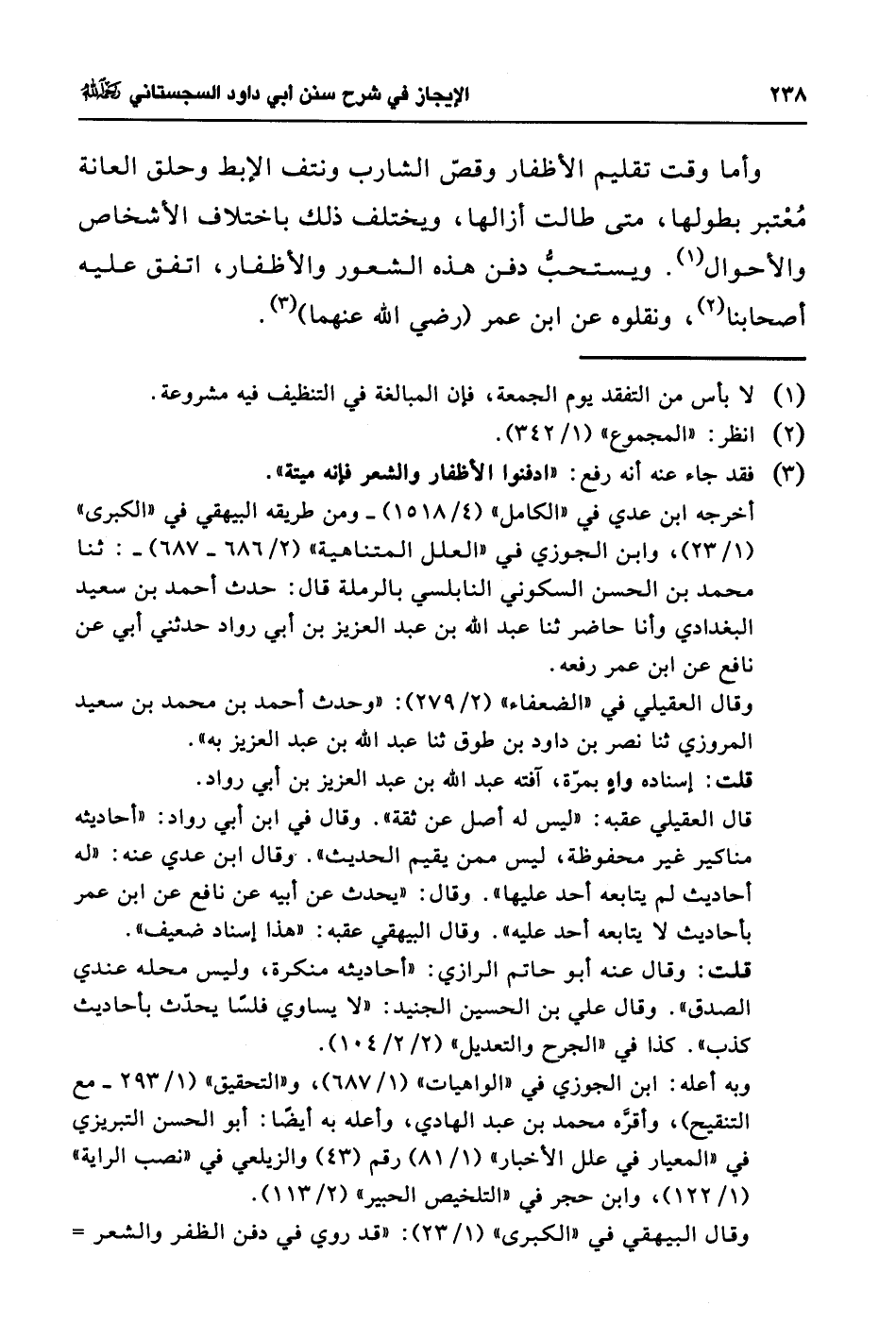 (¬3) فقد جاء عنه أنه رفع: "ادفنوا الأظفار والشعر فإنه ميتة".