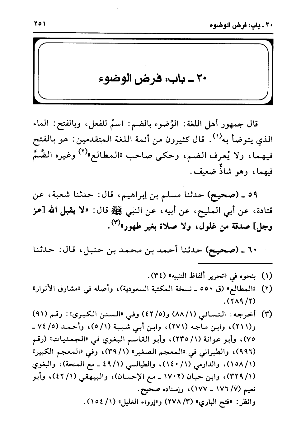 (¬3) أخرجه: النسائي (1/ 88) و (5/ 42) وفي "السنن الكبرى": رقم (91) و (211)، وابن ماجه (271)، وابن أبي شيبة (1/ 5)، وأحمد (5/ 74 - 75)، وأبو عوانة (1/ 235)، وأبو القاسم البغوي في "الجعديات" (رقم (996)، والطبراني في "المعجم الصغير" (1/ 39)، وفي "المعجم الكبير" (1/ 158)، والدارمي (1/ 140)، والطيالسي (1/ 49 - مع المنحة)، والبغوي (1/ 329)، وابن حبان (1702 - مع الإحسان)، والبيهقي (1/ 42)، وأبو نعيم (7/ 176 - 177)، وإسناده صحيح.
