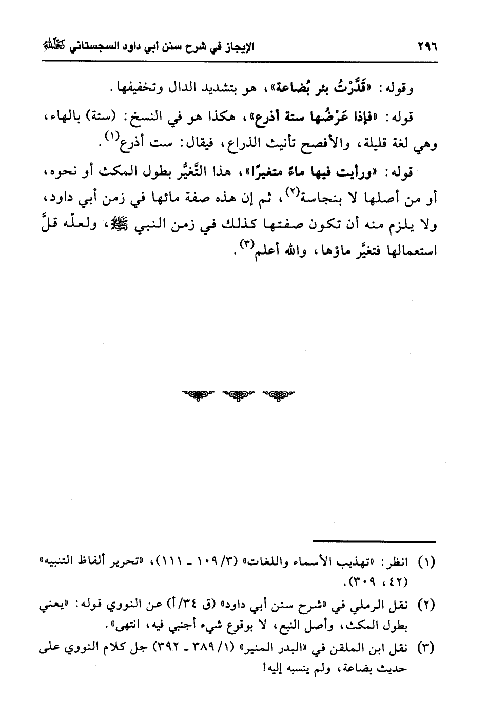 (¬3) نقل ابن الملقن في "البدر المنير" (1/ 389 - 392) جل كلام النووي على حديث بضاعة، ولم ينسبه إليه!