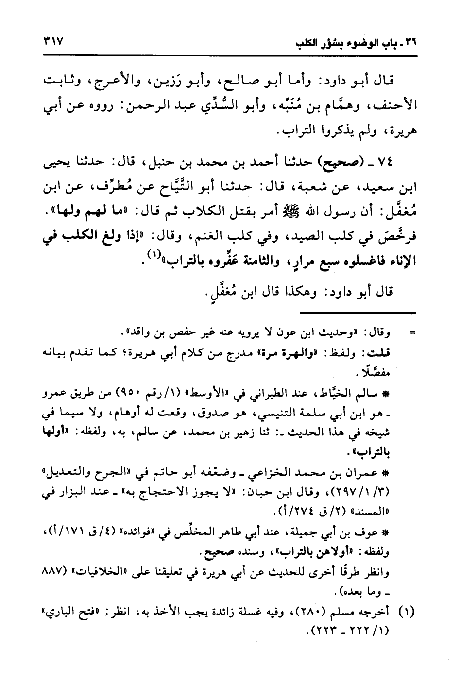 قال أبو داود: أما أبو صالح، وأبو رَزين، والأعرج، وثابت الأحنف، وهمام بن مُنَبِّه، وأبو السدي عبد الرحمن: رووه عن أبي هريرة، ولم يذكروا التراب.
