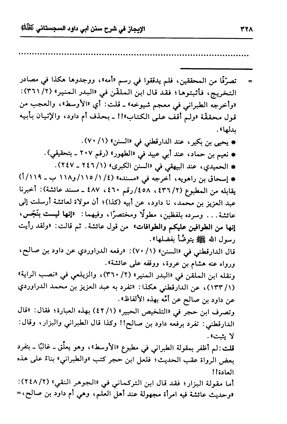 = تصرفًا من المحققين، فلم يدققوا في رسم "أمه"، ووجدوها هكذا في مصادر التخريج، فأثبتوها؛ فقد قال ابن الملقن في "البدر المنير" (2/ 361): "وأخرجه الطبراني في معجم شيوخه" -قلت: أي "الأوسط"، والعجب من قول محققة "ولم أقف على الكتاب"!! - بحذف أم داود، والإتيان بأبيه بدلها".