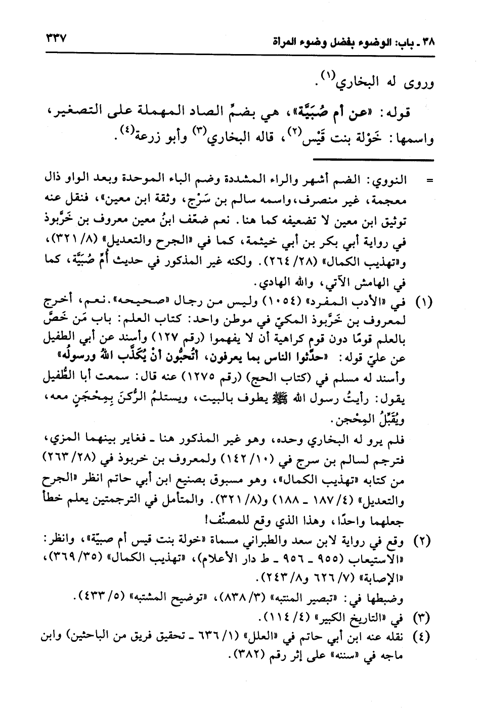 = النووي: الضم أشهر والراء المشددة وضم الباء الموحدة وبعد الواو ذال معجمة، غير منصرف، واسمه سالم بن سَرْج، وثقة ابن معين"، فنقل عنه توثيق ابن معين لا تضعيفه كما هنا. نعم ضعف ابنُ معين معروف بن خَرَّبوذ في رواية أبي بكر بن أبي خيثمة، كما في "الجرح والتعديل" (8/ 321)، و"تهذيب الكمال" (28/ 264). ولكنه غير المذكور في حديث أُمِّ صُبَيَّة، كما في الهامش الآتي، والله الهادي.