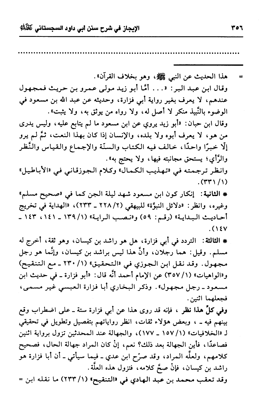 * الثالثة: التردد في أبي فزارة، هل هو راشد بن كيسان، وهو ثقة، أخرج له مسلم. وقيل: هما رجلان، وأنَّ هذا ليس براشد بن كيسان، وإنَّما هو رجل مجهول. وقد نقل ابن الجوزي في "التحقيق" (1/ 230 - مع التنقيح) و"الواهيات" (1/ 357) عن الإمام أحمد أنَّه قال: "أبو فزارة -في حديث ابن مسعود- رجل مجهول". وذكر البخاري أبا فزارة العبسي غير مسمى، فجعلهما اثنين.