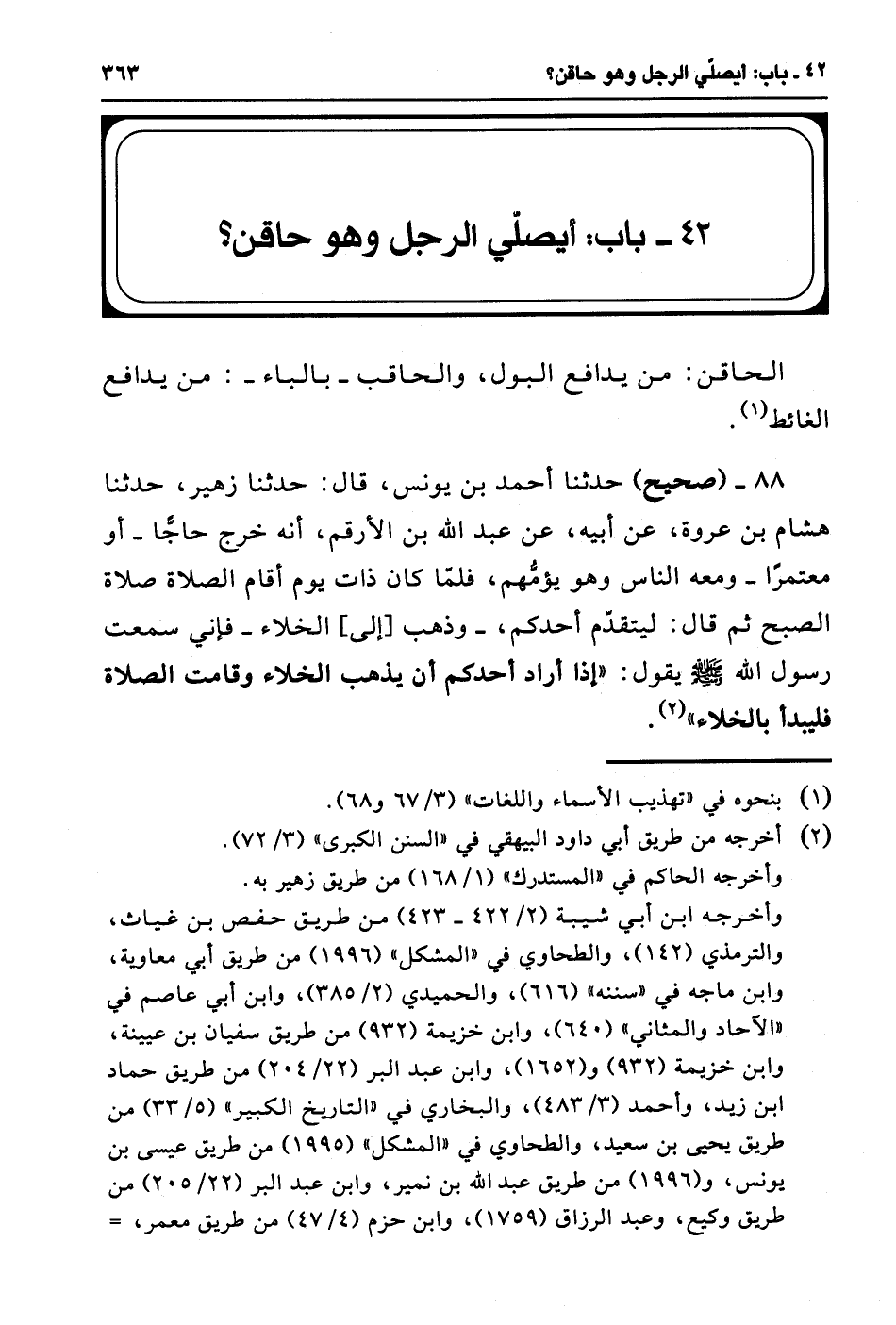 42 - باب: أيصلّي الرجل وهو حاقن؟