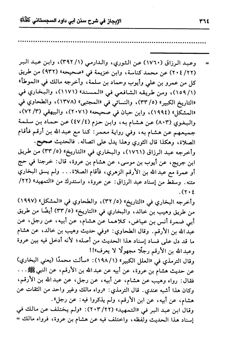 وقال الترمذي في "العلل الكبير" (1/ 198): "سالت محمدًا (يعني البخاري) عن حديث هشام بن عروة، عن أبيه عن عبد الله بن الأرقم، عن النبي - صلى الله عليه وسلم - ... فقال: رواه وهيب عن هشام، عن أبيه، عن رجل، عن عبد الله بن الأرقم، وكان هذا أشبه عندي. قال الترمذي: "رواه مالك وغير واحد من الثقات عن هشام، عن أبيه، عن ابن الأرقم، ولم يذكروا فيه: عن رجل".